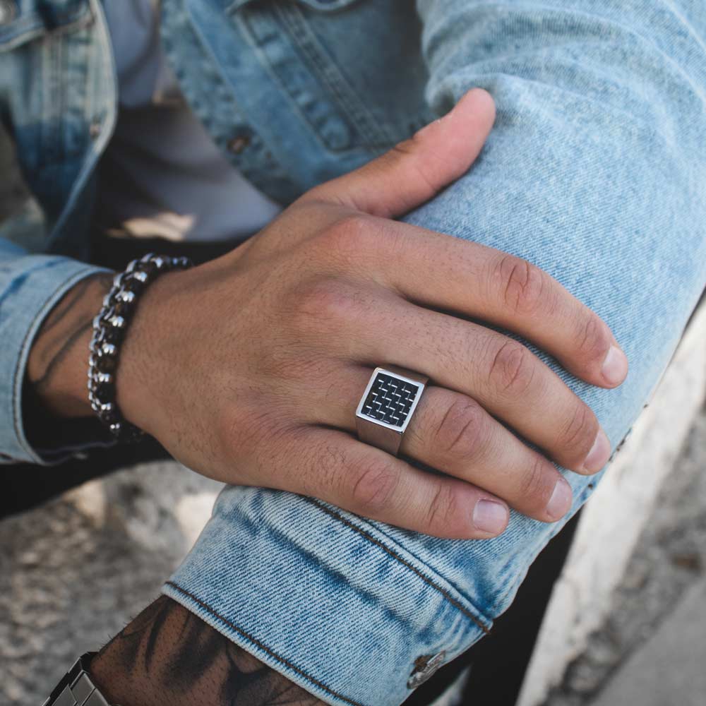 Este anel masculino destaca-se pelo detalhe em fibra de carbono na parte frontal, a face quadrada robusta e o acabamento em aço polido garantem sofisticação e estilo. Ideal para homens que procuram um acessório marcante, o padrão de fibra de carbono traz modernidade e personalidade à peça, tornando-a perfeita para o uso diário ou para ocasiões especiais.
