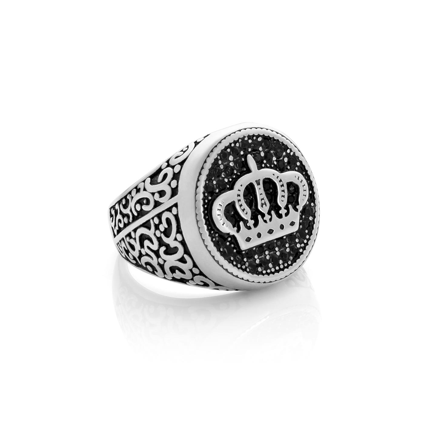 Imponente e cheio de estilo, este anel para homem é uma verdadeira jóia de poder e elegância. Feito em aço inoxidável, seu design apresenta uma coroa central em relevo, símbolo de nobreza e força, cercada por pedras que realçam ainda mais a peça. As laterais são detalhadas com intrincados arabescos, dando um toque de sofisticação. Ideal para homens que desejam expressar sua personalidade com um acessório marcante e único. Este anel é a combinação perfeita de tradição e modernidade, proporcionando um visual refinado em qualquer ocasião.
