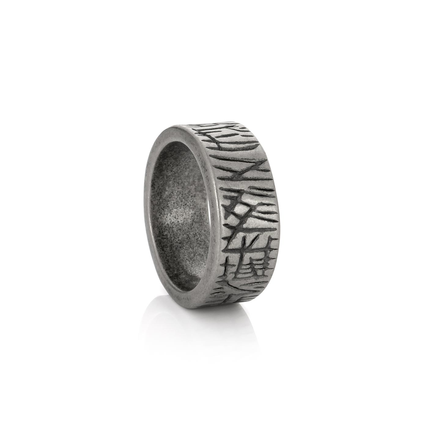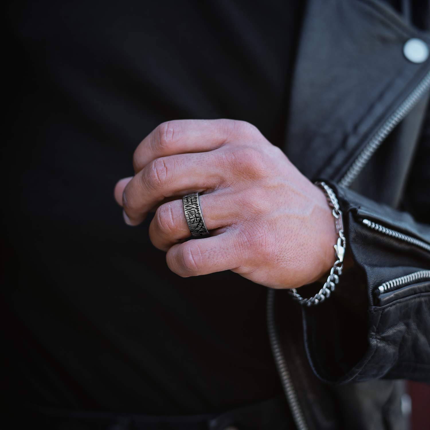 Este anel para homem apresenta uma textura envelhecida e padrões gravados ao longo da superfície, o anel exala um estilo bruto e sofisticado ao mesmo tempo. Este anel é a escolha ideal para homens que valorizam um estilo ousado e de impacto.