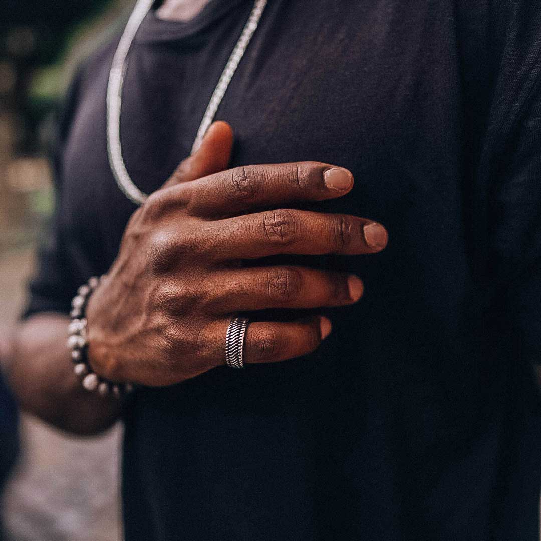 Este anel masculino combina um design moderno e ousado com detalhes texturizados que chamam a atenção. O anel apresenta uma superfície trabalhada com padrão ondulado, criando um visual único e contemporâneo. Além de seu estilo marcante, o anel pode ser personalizado com gravações internas, como nomes, datas ou mensagens especiais, tornando-o uma peça exclusiva e cheia de significado.