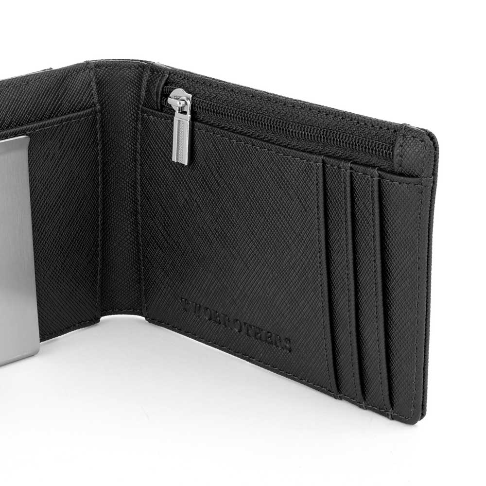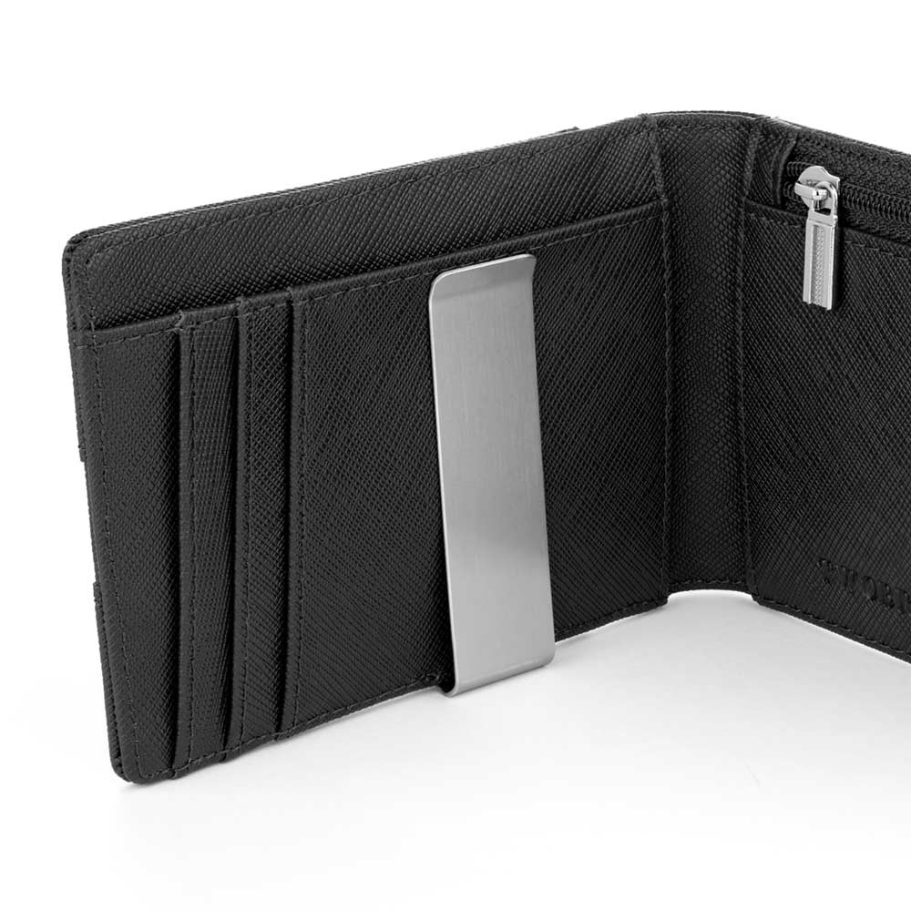 Design Funcional: Conta com compartimentos para cartões, porta-moedas com fecho, e uma mola em aço inoxidável para notas, garantindo uma organização prática e compacta.