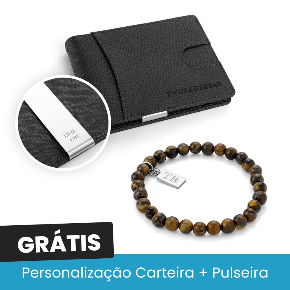 Pack com gravação grátis na Carteira e na Pulseira