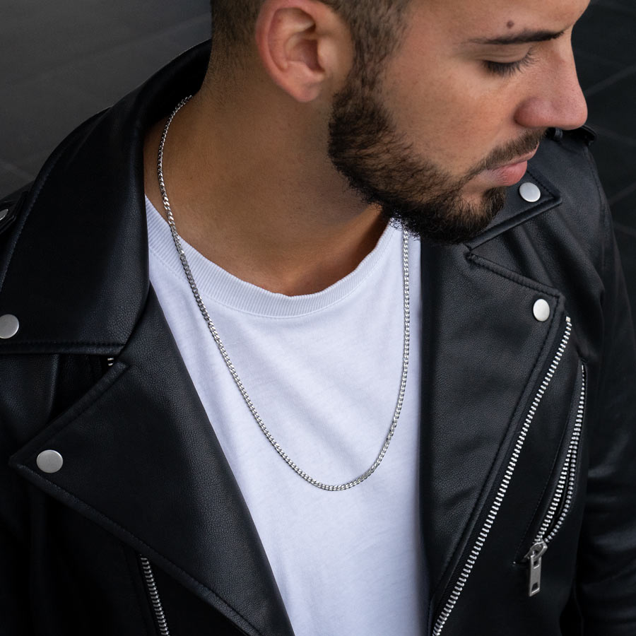 Colar masculino em aço inoxidável prateado, com uma corrente robusta de elo clássico, perfeito para homens que apreciam um visual sofisticado e atemporal. O design versátil deste colar permite que seja usado tanto no dia a dia quanto em ocasiões especiais, proporcionando um toque de elegância ao look. A durabilidade do aço inoxidável garante que o colar mantenha seu brilho e estilo por muito tempo.