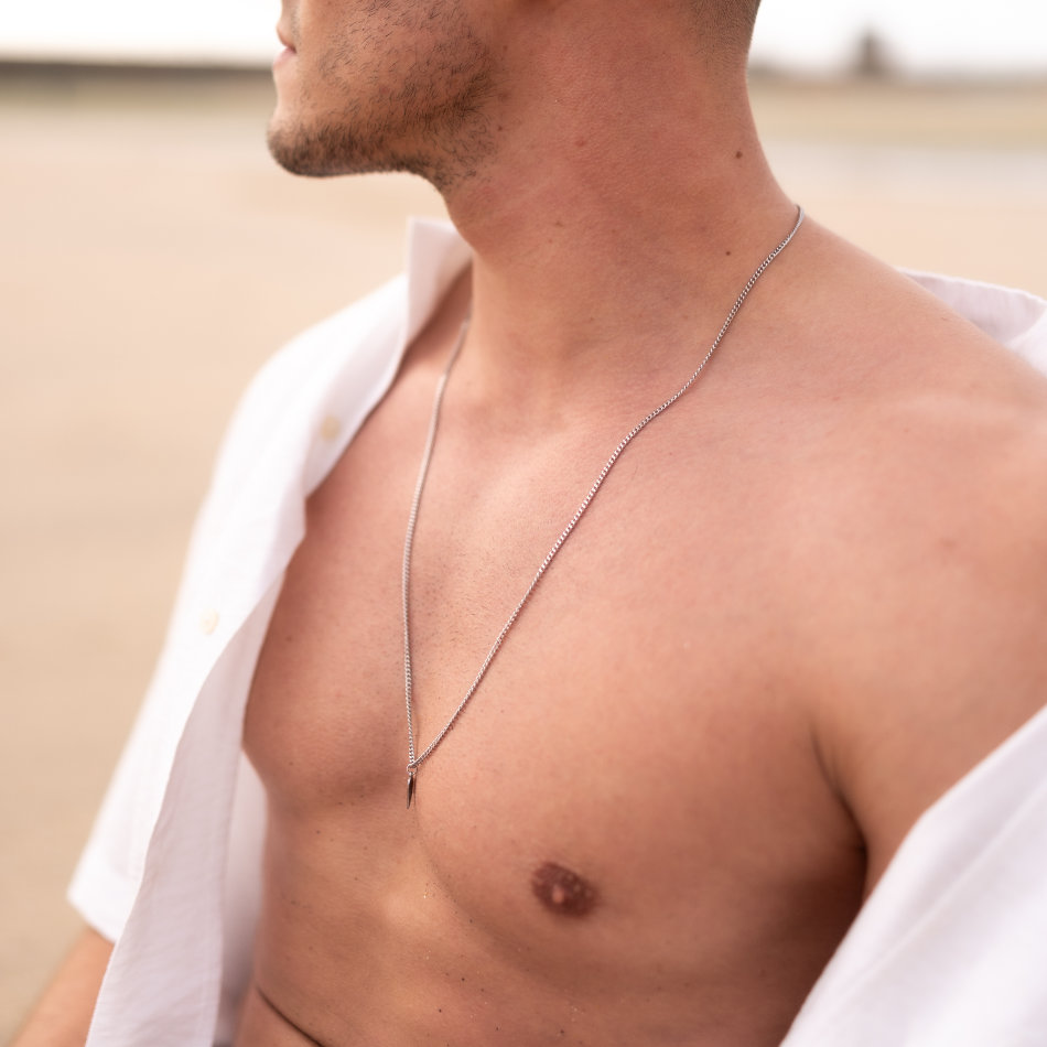 Colar masculino em aço inoxidável com pendente em formato de asa, simbolizando liberdade, proteção e espiritualidade. Fabricado em aço inoxidável, este colar garante durabilidade e resistência ao desgaste, mantendo seu brilho ao longo do tempo. Ideal para uso diário ou ocasiões especiais, é um presente significativo e sofisticado.