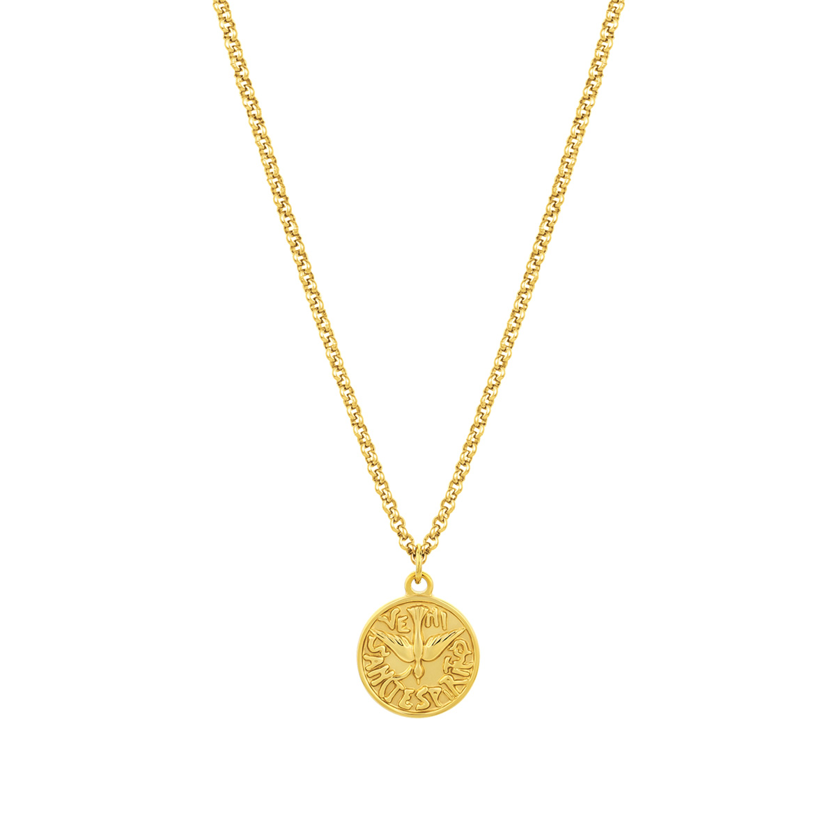 Colar masculino em aço inoxidável com medalha do Espírito Santo, representada por uma delicada pomba em alto-relevo, símbolo de paz e espiritualidade. Fabricado em aço inoxidável, este colar garante durabilidade e resistência ao desgaste, mantendo seu brilho ao longo do tempo. Ideal para uso diário ou ocasiões especiais, é um presente significativo e sofisticado.
