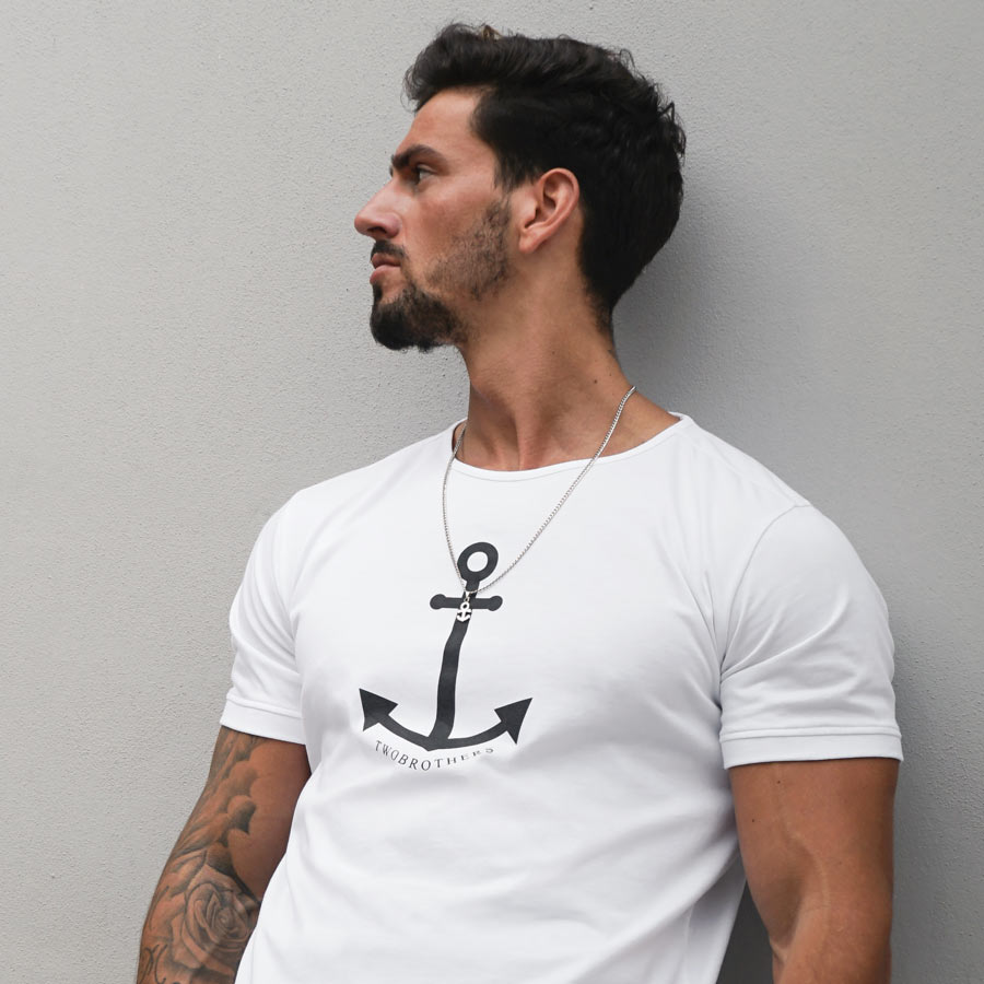 Colar masculino em aço inoxidável com pendente âncora. Este colar combina elegância e simbolismo, o design da âncora representa força, estabilidade e conexão com o mar. Fabricado em aço inoxidável, este colar garante durabilidade e resistência ao desgaste, mantendo seu brilho ao longo do tempo. Ideal para uso diário ou ocasiões especiais, é um presente significativo e sofisticado.