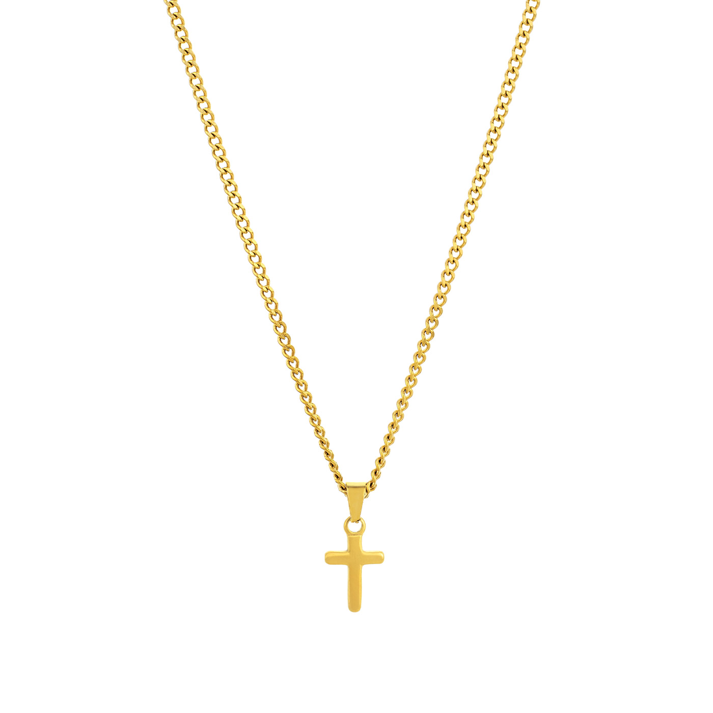 Colar masculino dourado em aço inoxidável com pendente de cruz. Este colar combina elegância e simbolismo, ideal para homens que desejam expressar a sua fé com estilo. Fabricado em aço inoxidável, este colar garante durabilidade e resistência ao desgaste, mantendo seu brilho ao longo do tempo. Ideal para uso diário ou ocasiões especiais, é um presente significativo e sofisticado.