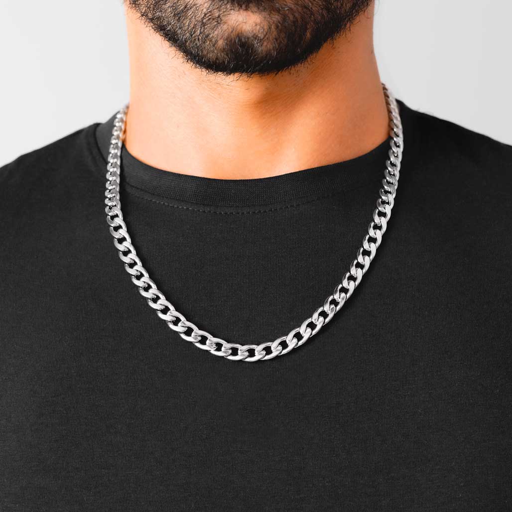 Este colar para homem em aço inoxidável polido é o acessório perfeito para quem procura um visual robusto. Com uma espessura marcante, a sua corrente grossa exibe uma malha cuidadosamente projetada para proporcionar resistência e estilo. O acabamento polido reflete a luz de maneira elegante, fazendo deste colar uma escolha poderosa e versátil, ideal para realçar a personalidade de qualquer look.
