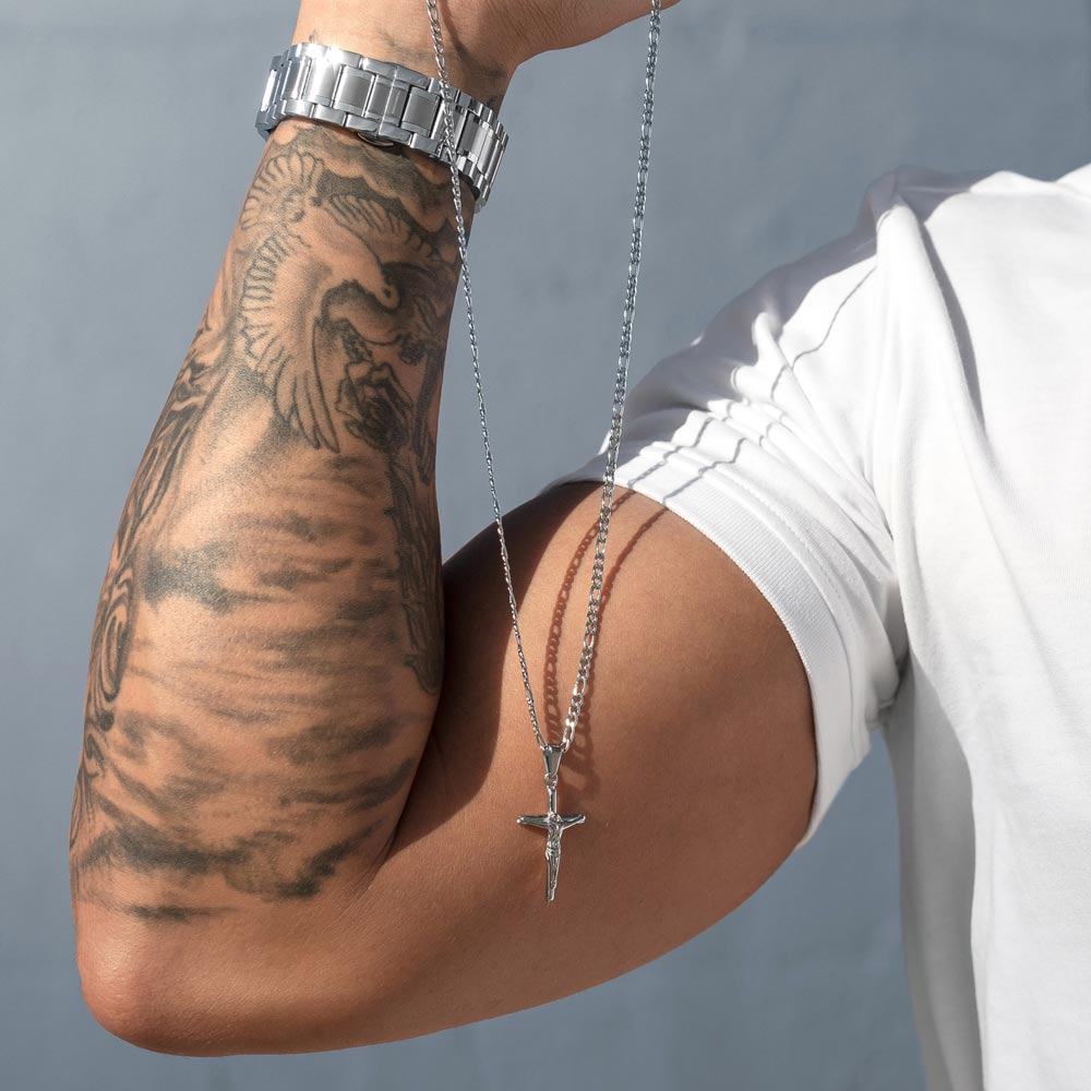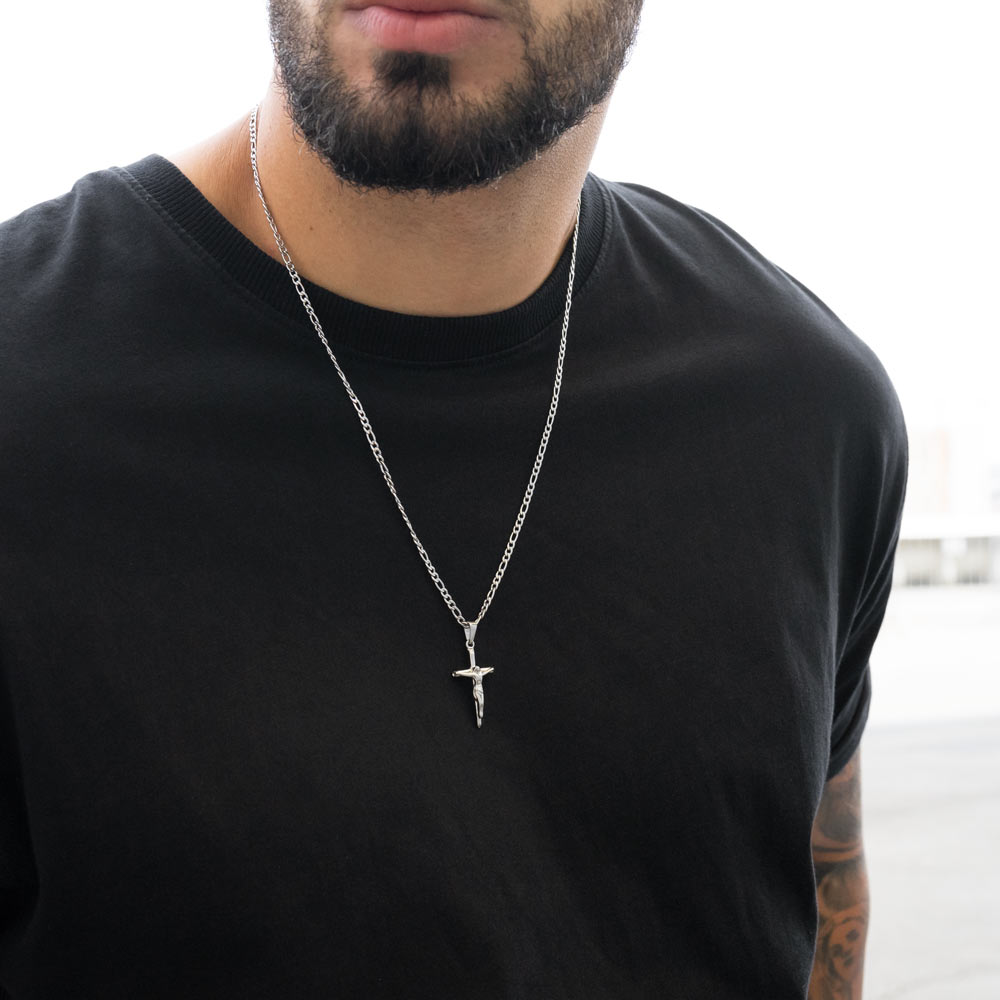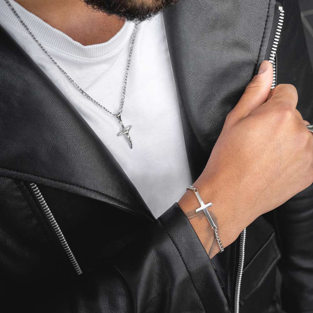 Colar masculino em aço inoxidável com pendente de cruz. Este colar combina elegância e simbolismo, ideal para homens que desejam expressar a sua fé com estilo. Fabricado em aço inoxidável, este colar garante durabilidade e resistência ao desgaste, mantendo seu brilho ao longo do tempo. Ideal para uso diário ou ocasiões especiais, é um presente significativo e sofisticado.