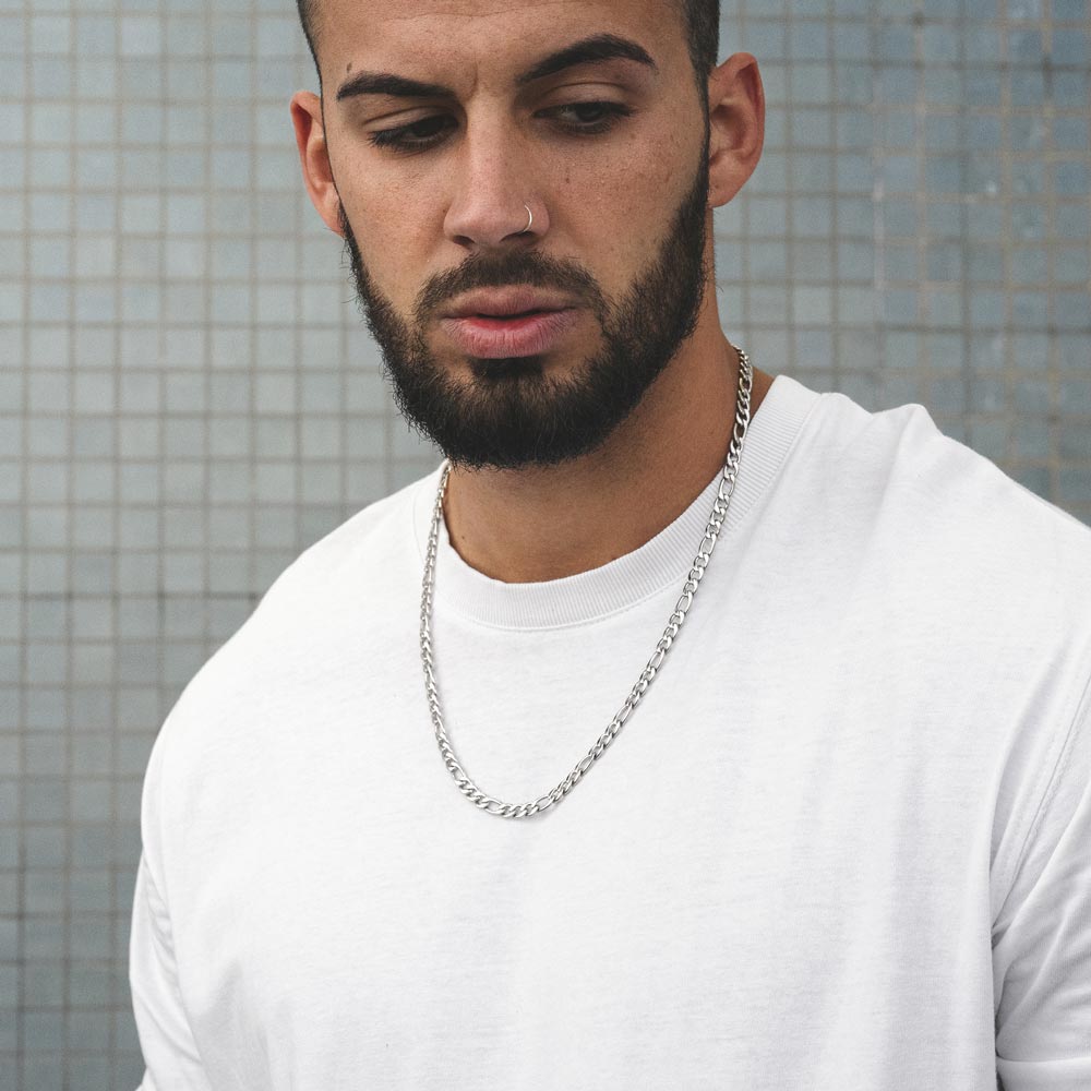 Este colar para homem em aço inoxidável polido é o acessório perfeito para quem procura um visual robusto. Com uma espessura marcante, a sua corrente grossa exibe uma malha cuidadosamente projetada para proporcionar resistência e estilo. O acabamento polido reflete a luz de maneira elegante, fazendo deste colar uma escolha poderosa e versátil, ideal para realçar a personalidade de qualquer look.