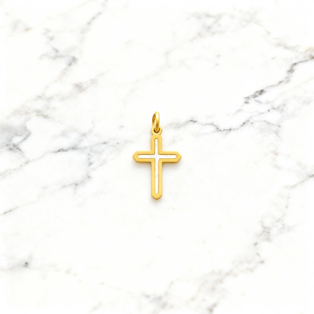 O pendente Cruz Imola Dourado é produzido em aço inoxidável antialérgico dourado, ideal para adicionar a um colar da Twobrothers com uma largura máxima de 0,20 cm.