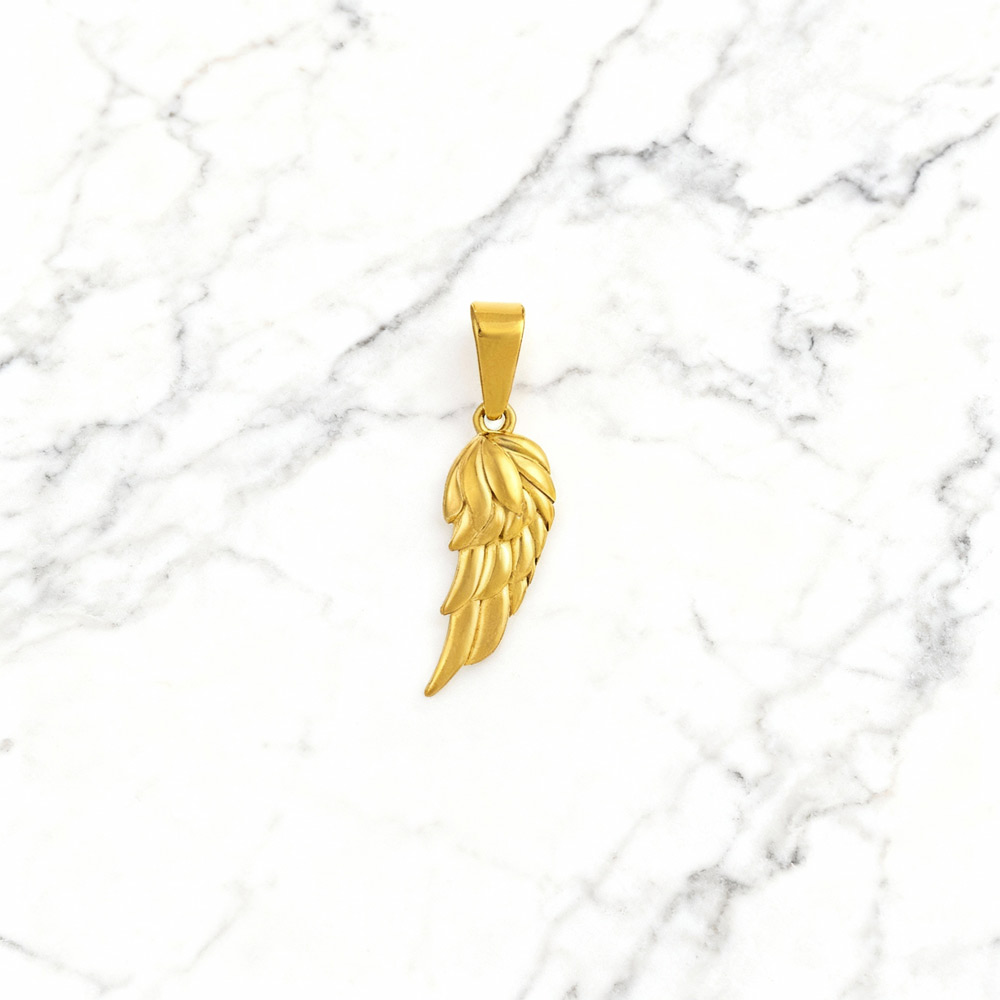 O pendente Asa Los Angeles Gold é produzido em aço inoxidável antialérgico dourado, ideal para adicionar a um colar da Twobrothers com uma largura máxima de 0,35 cm.