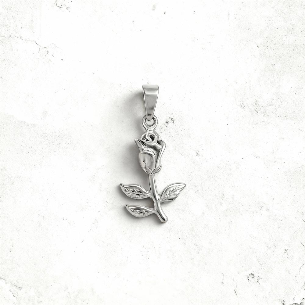 O pendente Rose, em forma de rosa, é produzido em aço inoxidável antialérgico, ideal para adicionar a um colar da Twobrothers com uma largura máxima de 0,35 cm.
