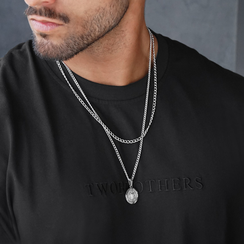Este conjunto masculino de colares em aço inoxidável foi projetado para homens que buscam estilo e resistência. Fabricados em aço inoxidável de alta qualidade, estas peças são resistentes à oxidação e mantêm a sua cor e brilho mesmo em contato com água do mar ou da piscina. Perfeitos para o uso diário, não perdem a cor e não mancham.