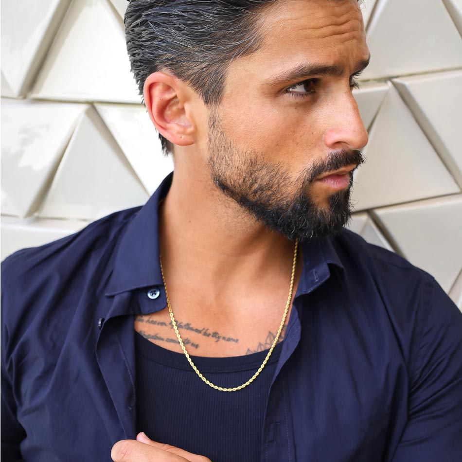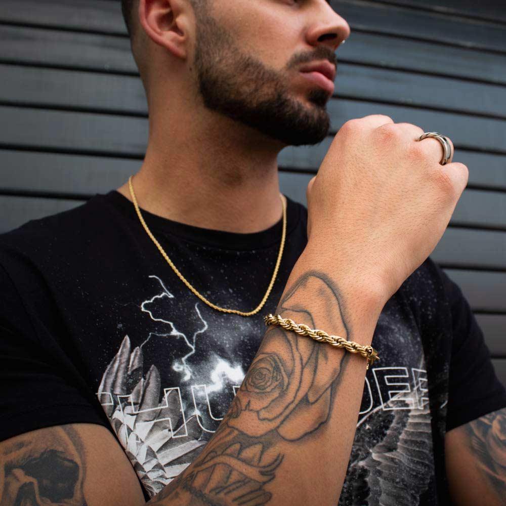 Conjunto pulseira e colar dourado para homem em Aço Inoxidável