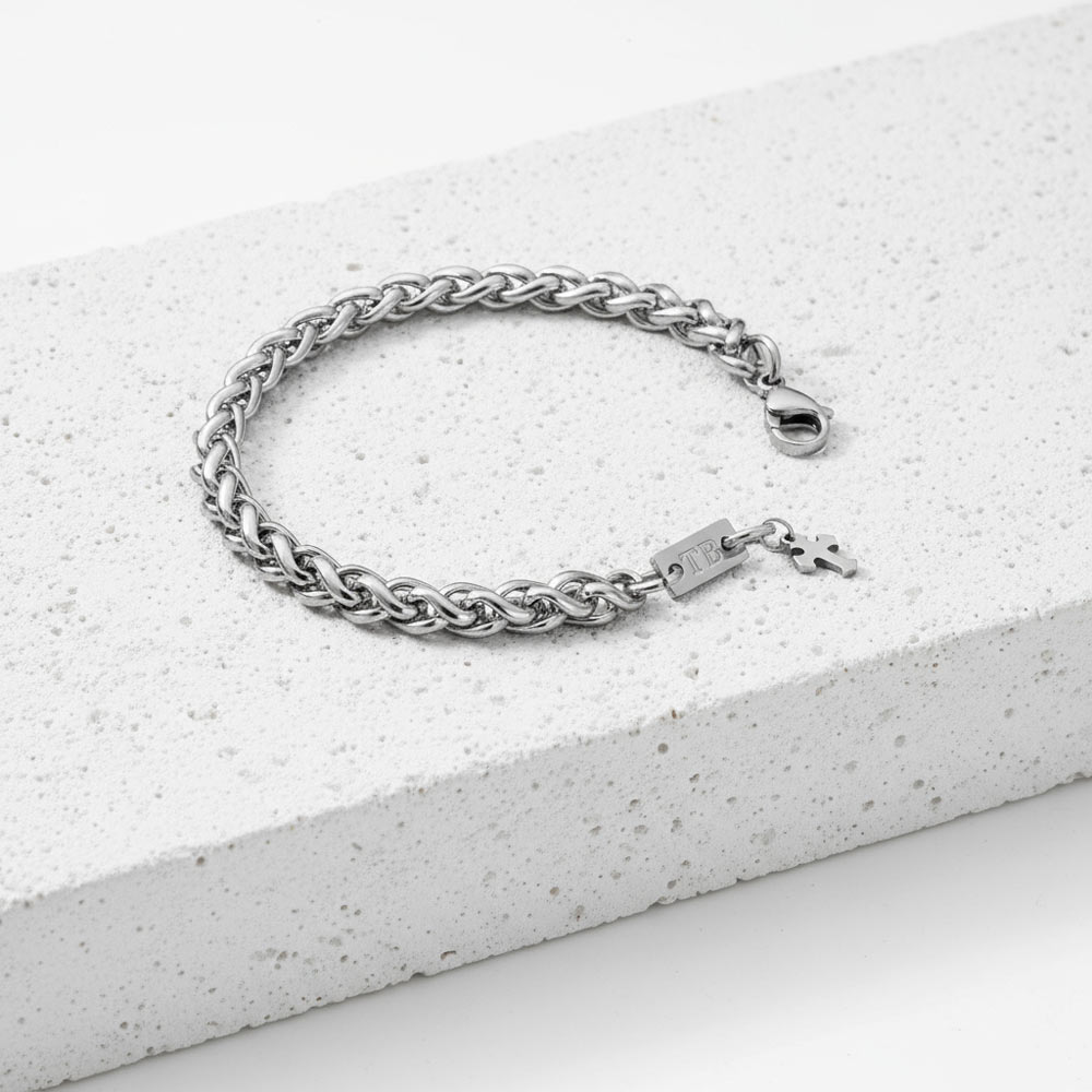 Esta pulseira para homem prateada e com um pendente em forma de cruz, é o acessório ideal para quem procura um look moderno e com um simbolismo de fé e proteção.
