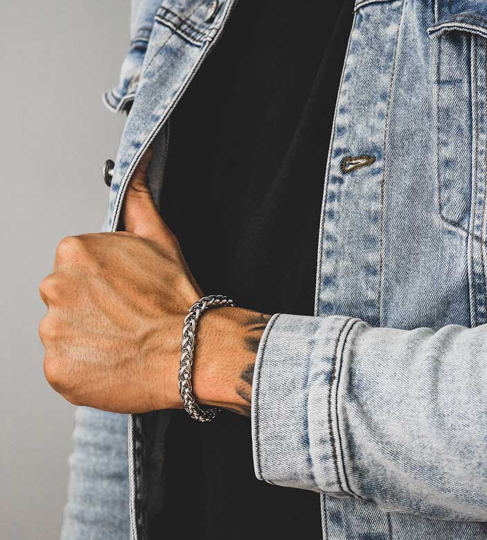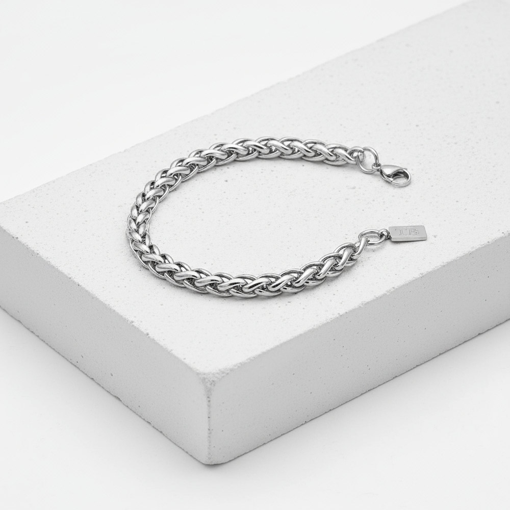 Esta pulseira para homem prateada não é apenas um acessório; é uma afirmação de estilo. Combinando resistência e robustez, ela é a escolha perfeita para quem valoriza um apontamento elegante e robusto.