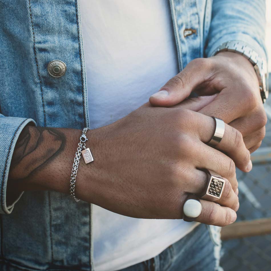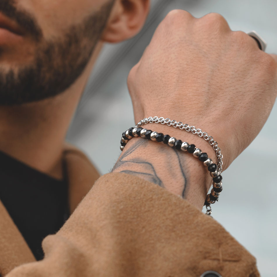 Esta pulseira para homem prateada foi criada para homens que procuram pulseiras para um apontamento discreto e elegante no seu look diário.