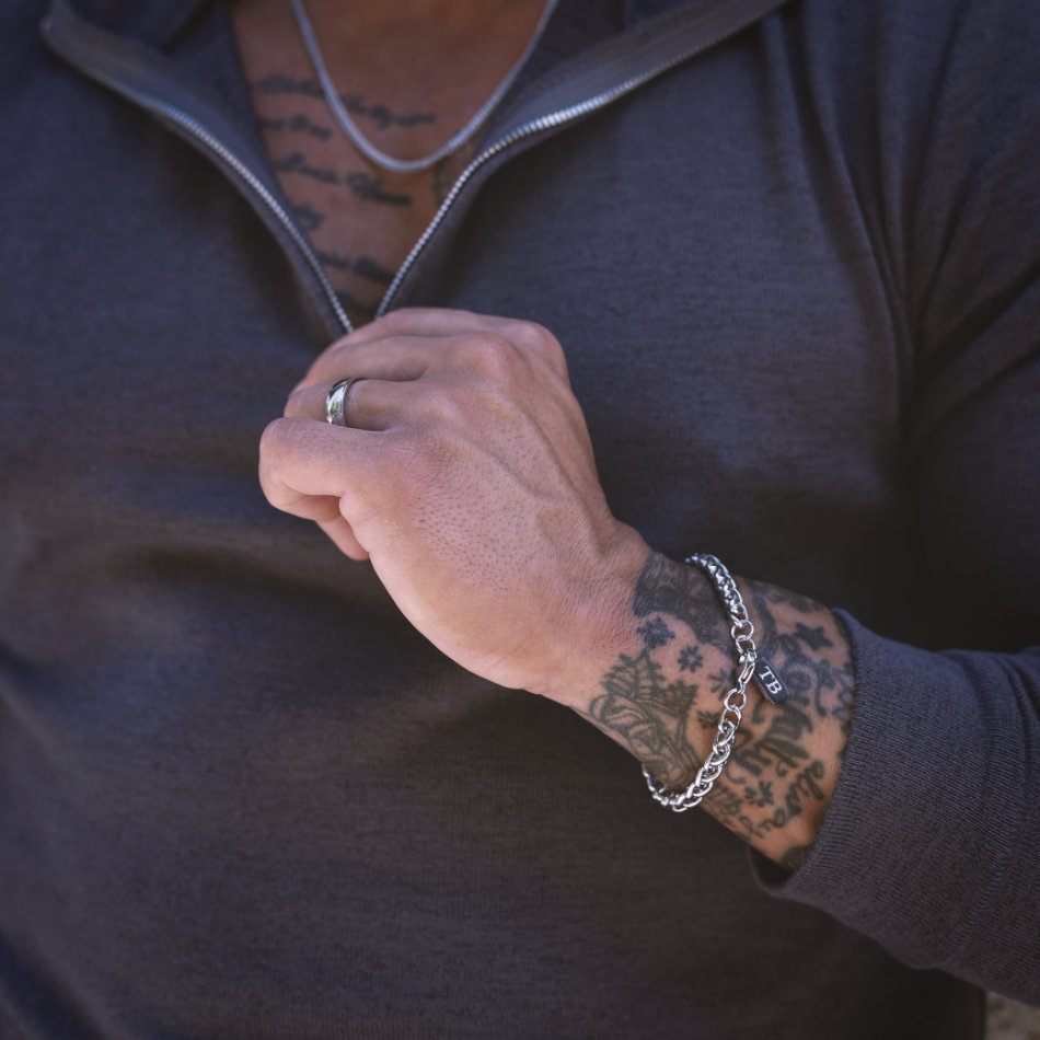 Esta pulseira para homem prateada não é apenas um acessório; é uma afirmação de estilo. Combinando resistência e design sofisticado, ela é a escolha perfeita para quem valoriza um apontamento elegante e discreto.