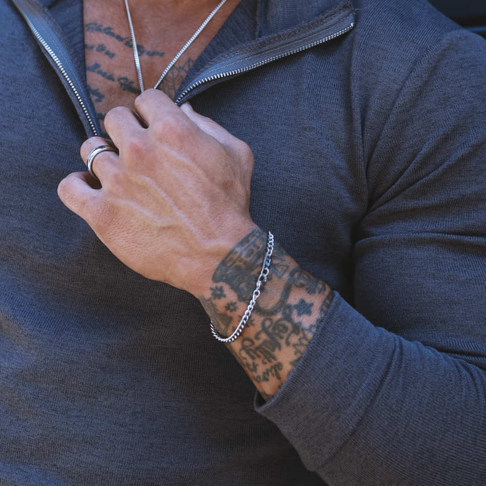 Esta pulseira para homem fina prateada foi criada para homens que procuram pulseiras finas para um apontamento discreto e elegante no seu look diário.
