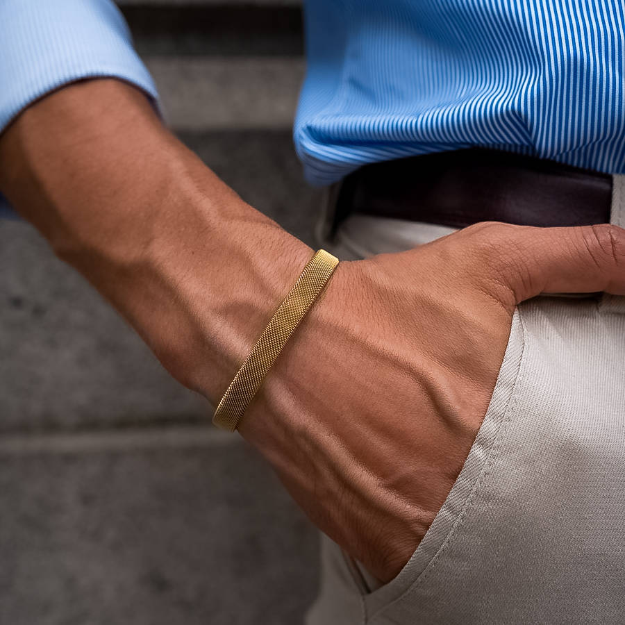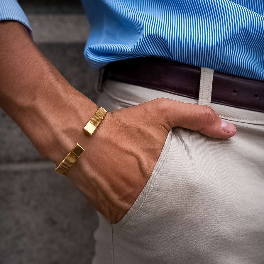 O design aberto facilita o ajuste ao pulso, proporcionando conforto e praticidade. Ideal para complementar tanto looks casuais quanto formais, esta pulseira traz um toque de sofisticação minimalista, perfeita para homens que buscam um acessório durável e de bom gosto.
