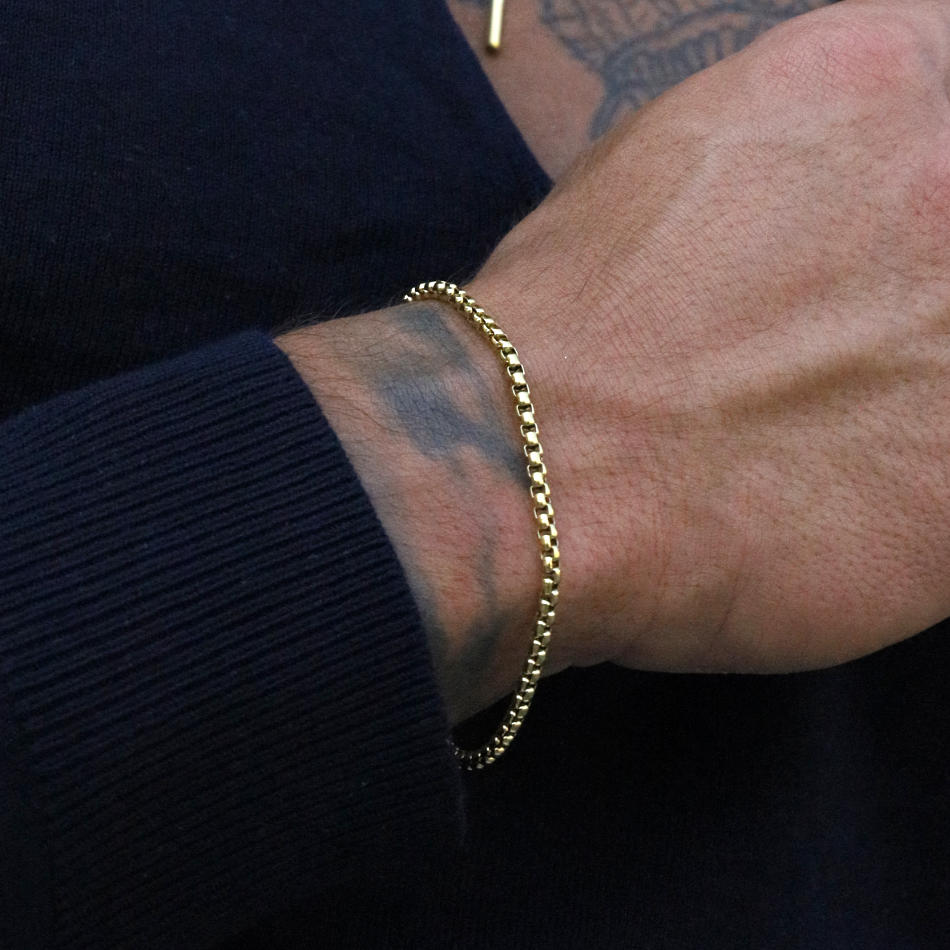 Esta pulseira para homem fina dourada foi criada para homens que procuram pulseiras finas para um apontamento discreto e elegante no seu look diário.