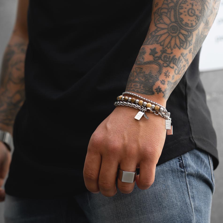 Esta pulseira para homem fina prateada foi criada para homens que procuram pulseiras finas para um apontamento discreto e elegante no seu look diário.