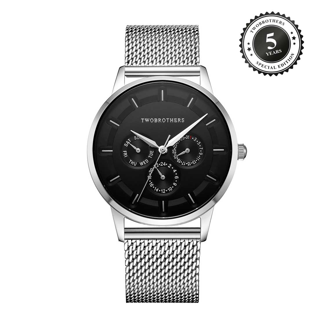 A TwoBrothers oferece garantia que cobre defeitos de fabrico durante 3 anos após a data de compra. Se partes do relógio não funcionam corretamente, por motivos de fabrico, iremos reparar o seu artigo ou substitui-lo.