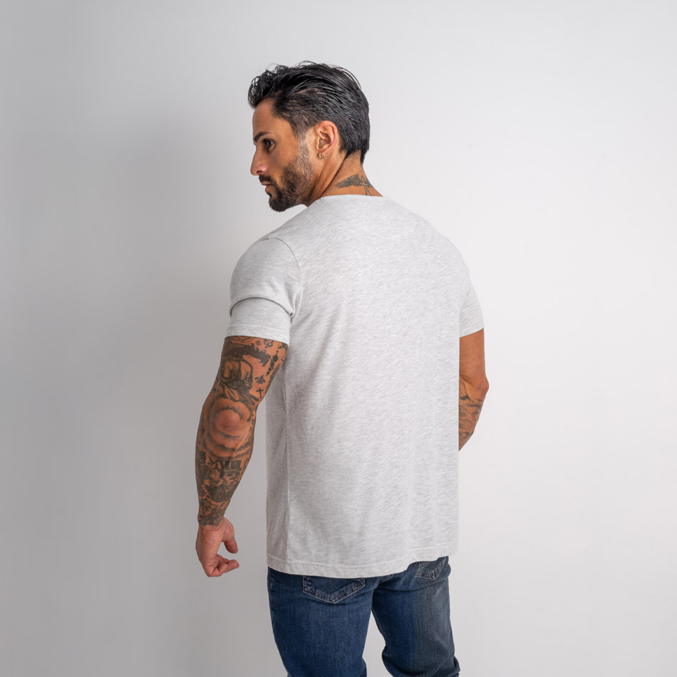 Para proporcionar ainda mais conforto durante a utilização desta T-shirt, procedemos à estampagem da etiqueta, no interior da meia lua da t-shirt, substituindo as tradicionais e incómodas etiquetas por algo mais confortável.