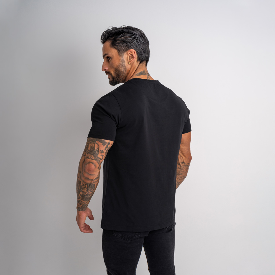 Para proporcionar ainda mais conforto durante a utilização desta T-shirt, procedemos à estampagem da etiqueta, no interior da meia lua da t-shirt, substituindo as tradicionais e incómodas etiquetas por algo mais confortável.