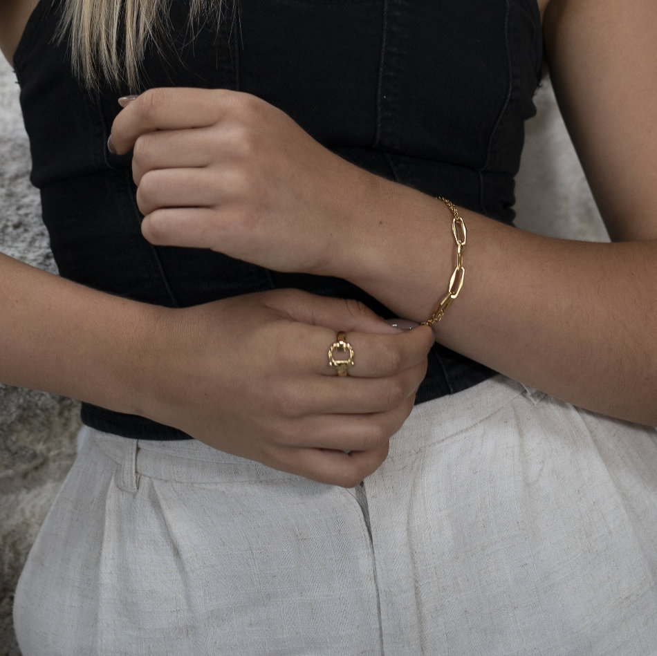 Anel resistente à água, garantindo que não vai descolorar, manchar ou perder a sua cor – mesmo durante o banho, no mar ou na piscina. Este anel foi desenvolvido a pensar na durabilidade e em preservar a sua estética natural.