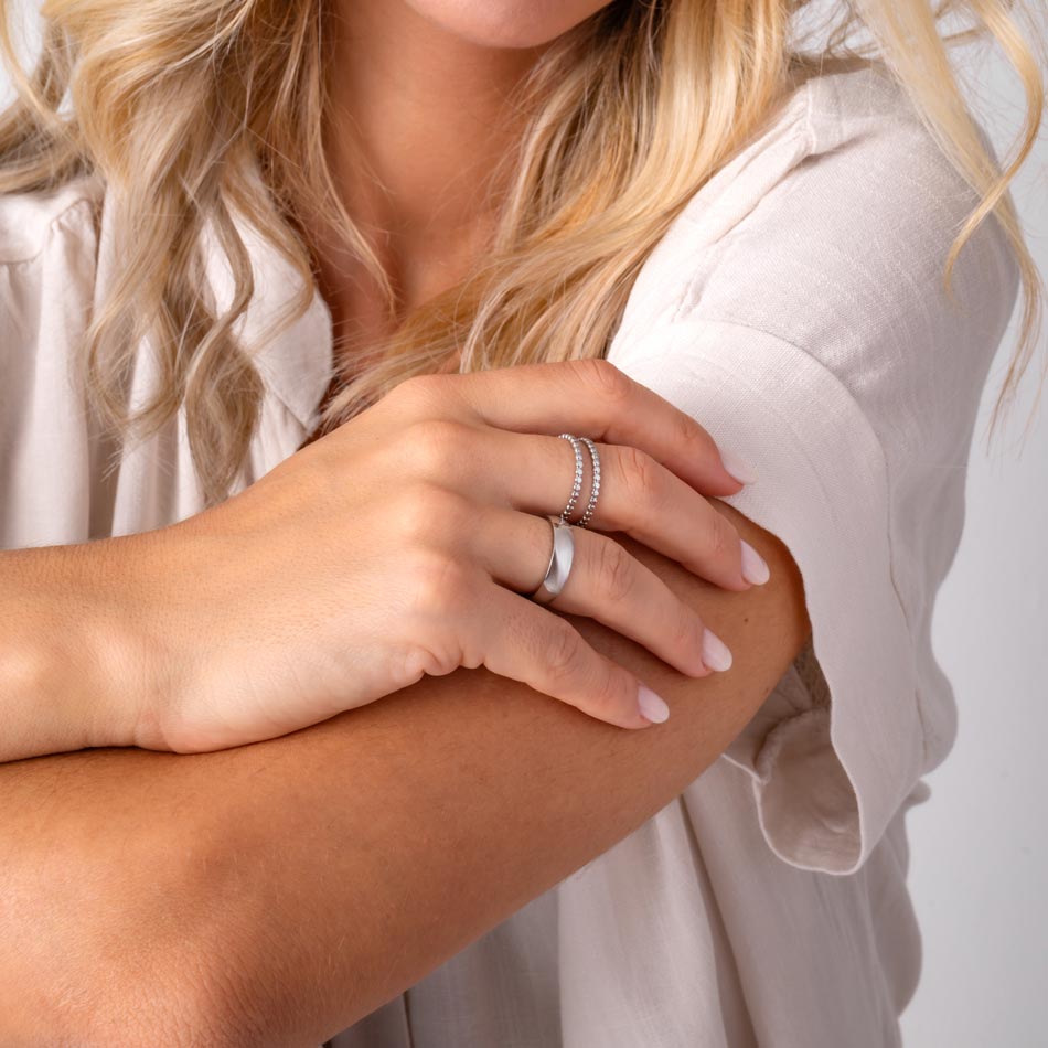 Anel resistente à água, garantindo que não vai descolorar, manchar ou perder a sua cor – mesmo durante o banho, no mar ou na piscina. Este anel foi desenvolvido a pensar na durabilidade e em preservar a sua estética natural.