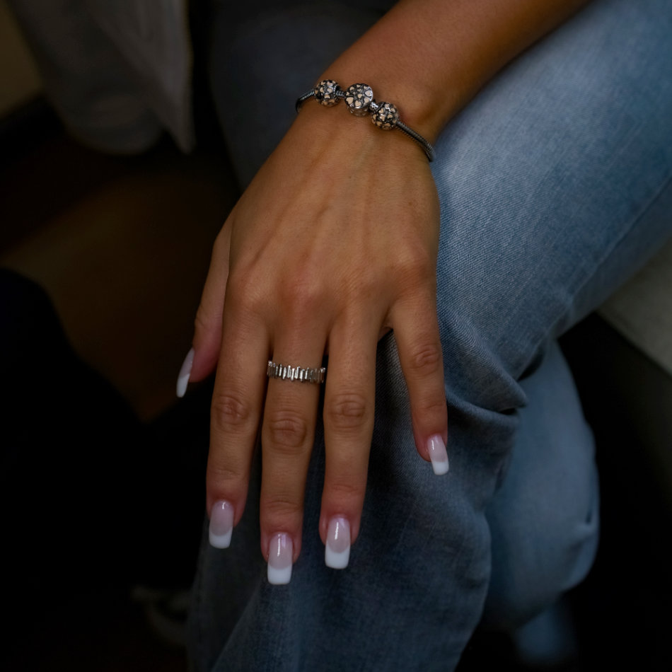 Anel resistente à água, garantindo que não vai descolorar, manchar ou perder a sua cor – mesmo durante o banho, no mar ou na piscina. Este anel foi desenvolvido a pensar na durabilidade e em preservar a sua estética natural.
