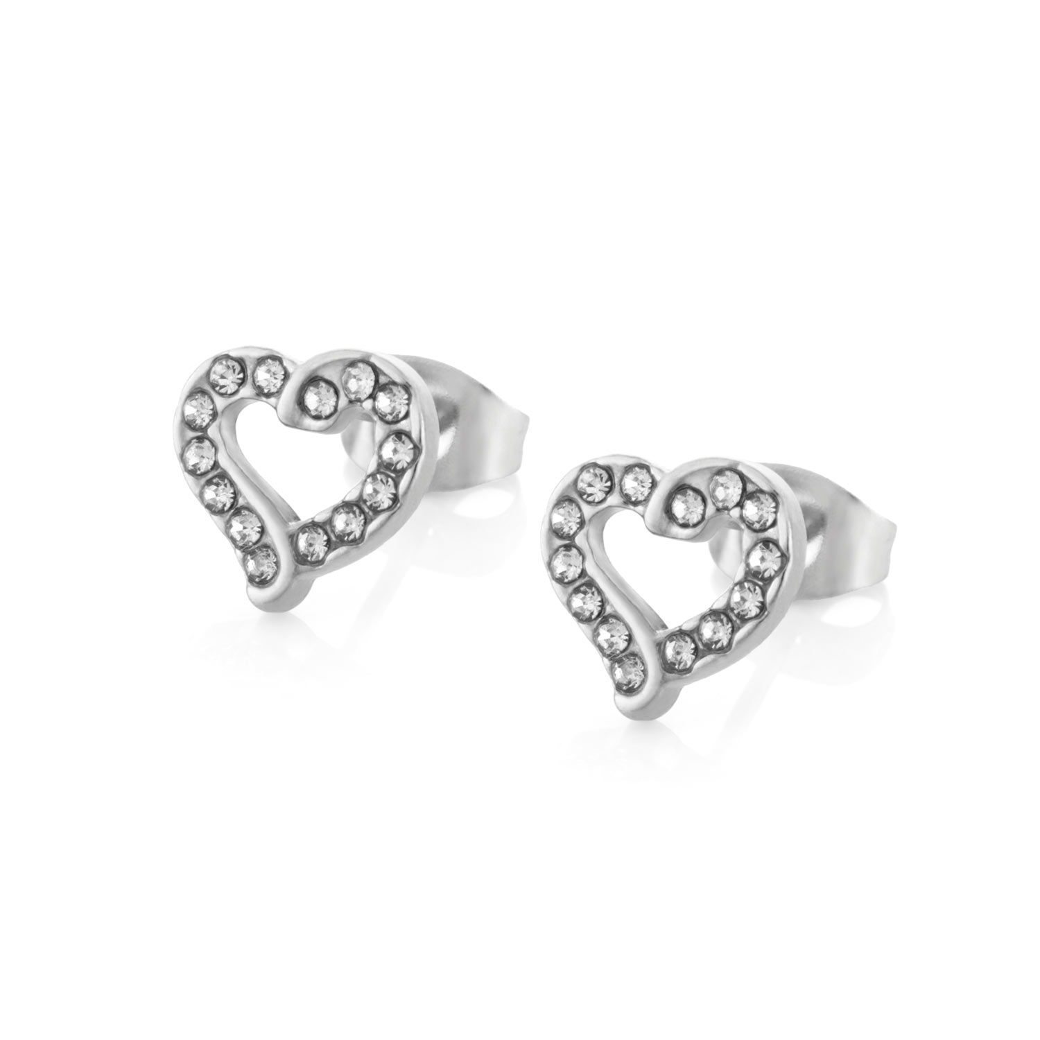 Brincos Mulher Prateados Coração com Brilhantes