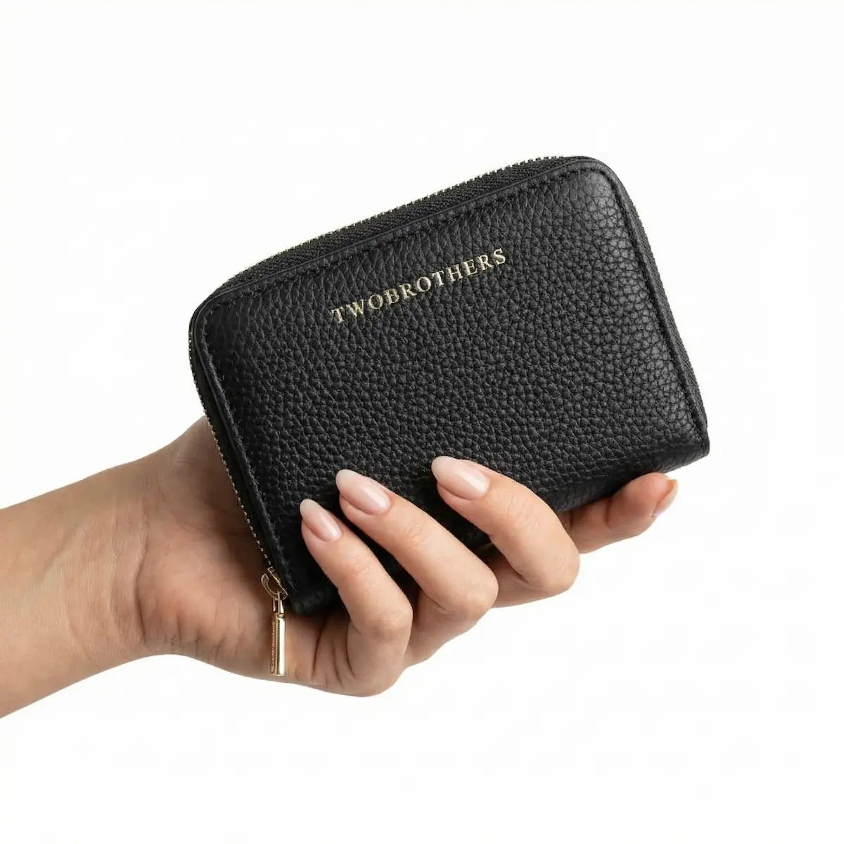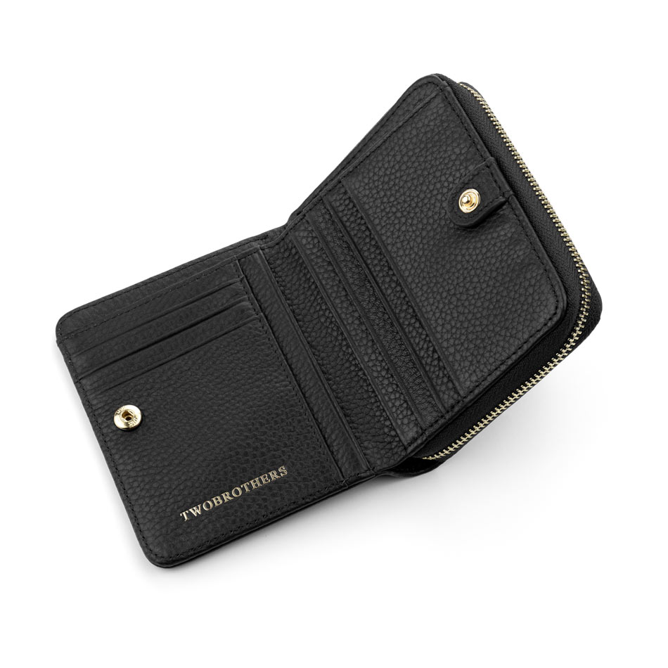 A carteira para mulher Mary da TwoBrothers em pele preta é uma peça sofisticada e funcional, perfeita para o dia a dia. Fabricada em pele genuína com textura granulada, oferece um toque de qualidade e elegância. O tom preto clássico traz versatilidade, combinando facilmente com diferentes estilos e ocasiões.