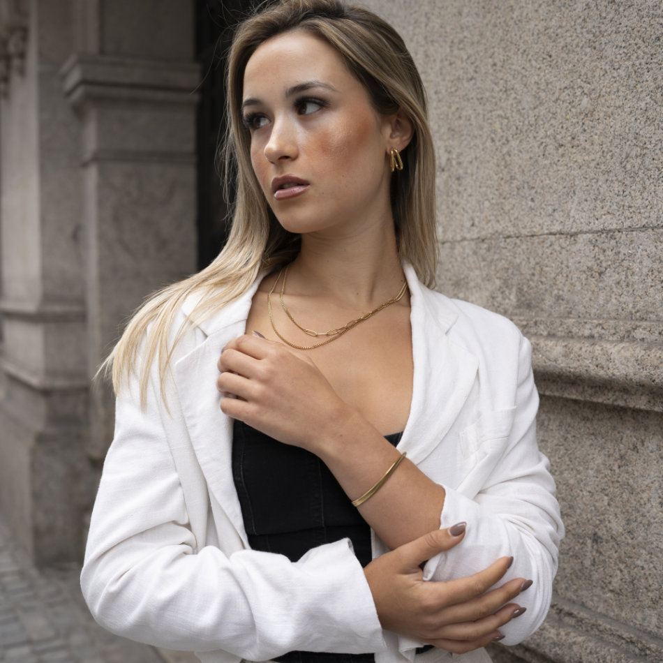 Quando o colar/pulseira é constituído por uma malha/fio de largura inferior a 3 mm, é considerado delicado, pelo que recomendamos que não se utilize o acessório durante as práticas desportivas, bem como durante a noite de sono.